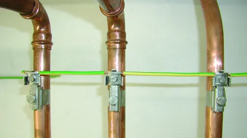 Jordingsspændebånd til udligning af rør jvf. stærkstrømsbekendtgørelsen.