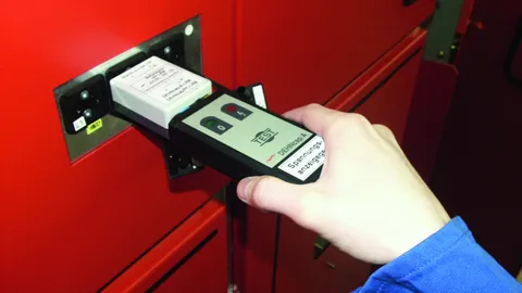 Spannungsprüfsystem zum allpoligen Feststellen der Spannungsfreiheit an der Arbeitsstelle für Schaltanlagen mit HR- oder LRM-Messbuchsen.