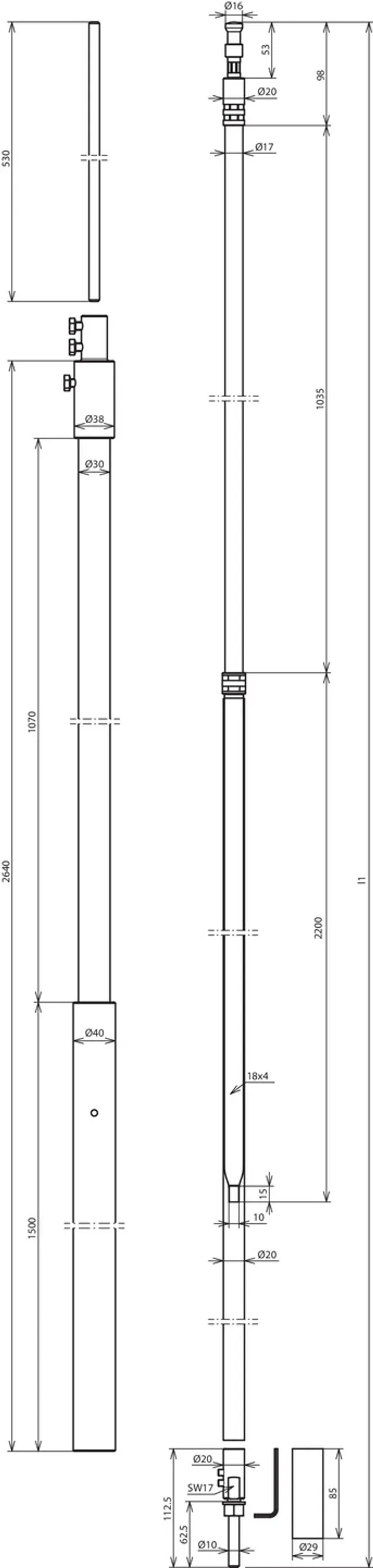| Länge Stützrohr | 2640 mm |