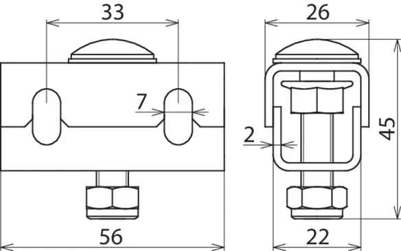 | Befestigungsbohrungen für Gitterbahn | [4x] 9 x 20 / [1x] 9 x 9 mm |