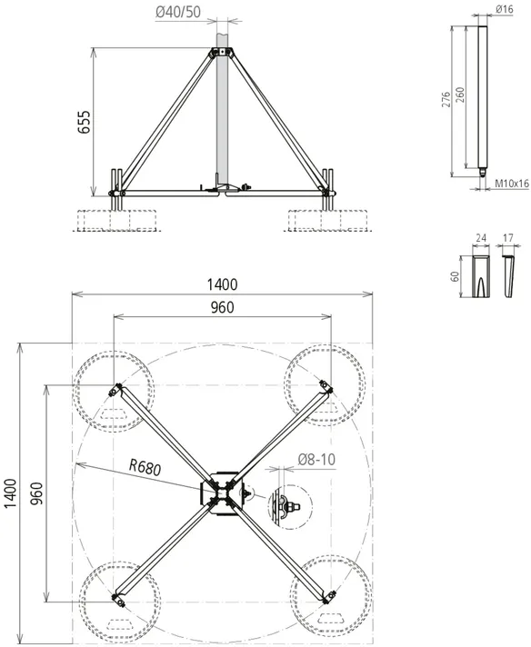 | Platzbedarf Stativ | 1880 x 1880 mm |