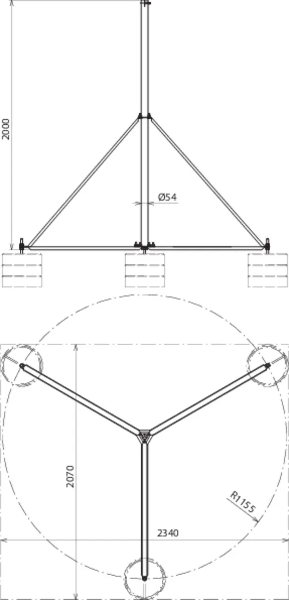 | Platzbedarf Stativ | 2300 x 1995 mm |