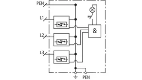 | Blitzstoßstrom (10/350 µs) [L1+L2+L3-PEN] (Itotal ) | 75 kA |