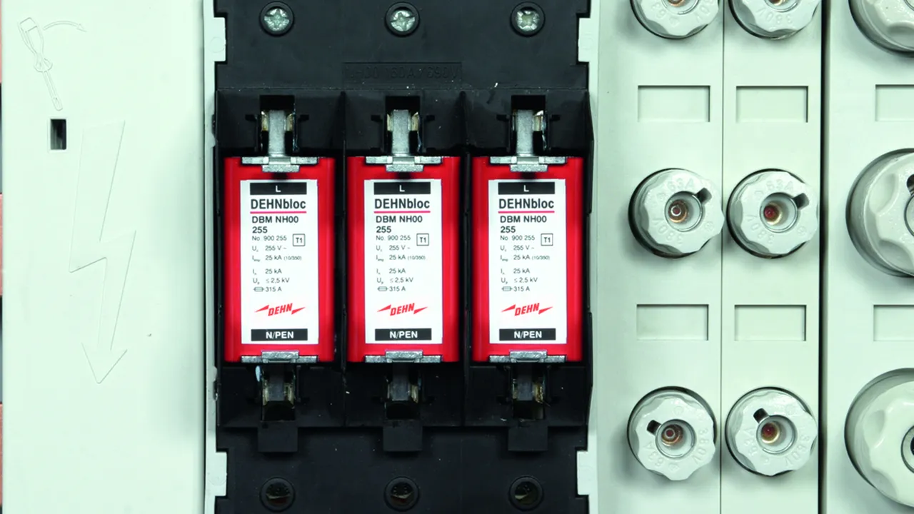 - Ohne zusätzliche Leitungslänge auf Überspannungs-Schutzgerät DEHNguard ... bzw. V(A) NH ... direkt koordiniert