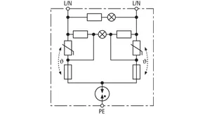 | Gesamtableitstoßstrom (8/20 µs) [L+N-PE] (Itotal ) | 5 kA |