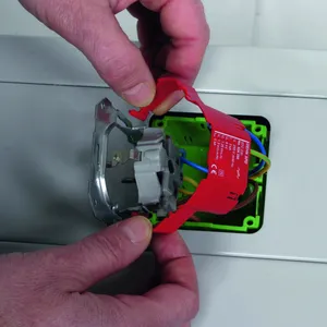 - Kunststofftragring mit Schnappverschluss zur einfachen Installation an bereits montierten Steckdosen