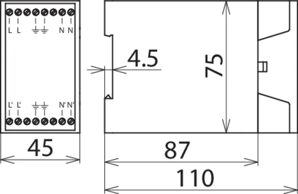 Netzfilter NF 10 Netzfilter zum Schutz von empfindlichen Endverbrauchern der Automatisierungstechnik vor hochfrequenten Störspannungen Nennspannung: 230 V/50 Hz Nennstrom: 10 A Dämpfung (1 MHz): sym. > 64 dB asym. > 69 dB Vorsicherung: 10 A gL/gG Abmessungen: 110 x 45 x 75 mm Montage auf Hutprofilschiene 35 mm nach EN 50022