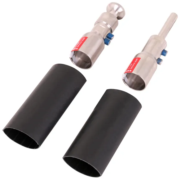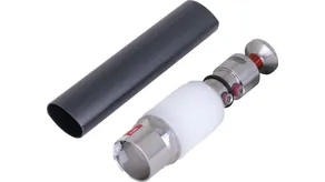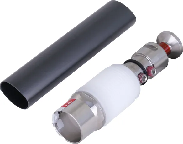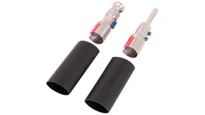 Anschlusselemente zum Abschließen der HVI power long Leitung an beiden Enden, beim Erstellen des Endverschlusses der Leitung im Stützrohr (Kopfstück) und Anschlusselement zum Anschließen an andere Teile des äußeren Blitzschutzes oder der Erdungsanlage (inkl. zwei Schrumpfschläuche).