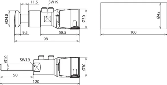| Anschluss | Bolzen Ø10 mm, L 50 mm |