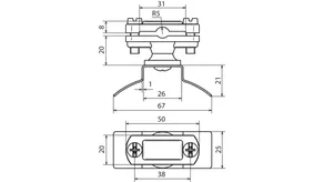 Halter mit Klemmteil für Spannbandbefestigung mit Spannkopf (Art.-Nr. 540 930) und Endlos-Spannband (Art.-Nr. 540 931, Abmessung 14 x 0,3 mm).