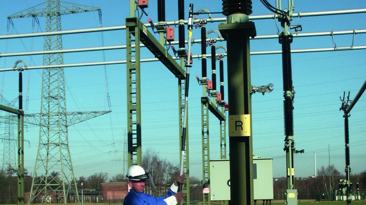 Der Abstands-Spannungsprüfer ASP mit dem E-Feldsensor der Kategorie „S“ ist mit der grünen Markierung des Auslegers im 90°-Winkel an den untersten Isolatorteller anzulegen.