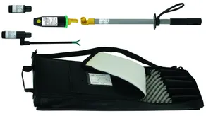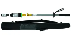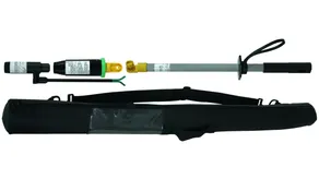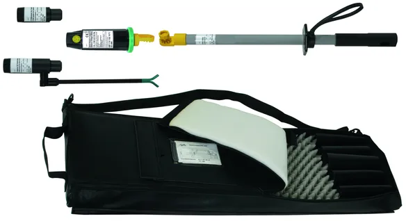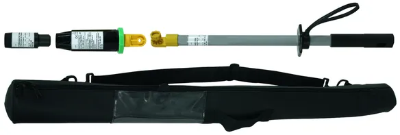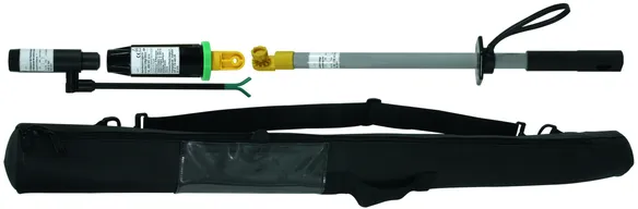 Der Abstands-Spannungsprüfer ASP mit dem E-Feldsensor der Kategorie „L“ ist mit dem grünen Ring so an die letzte, geerdete Schutzarmatur anzulegen, dass der E-Feldsensor in Richtung des am anderen Isolatorenende befestigten Leiterseiles zeigt.