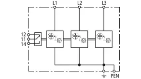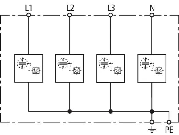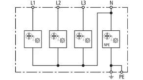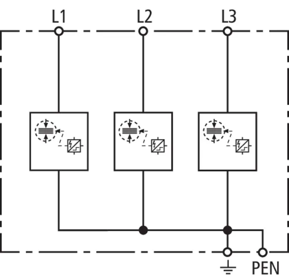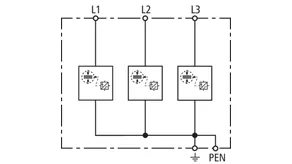 | Blitzstoßstrom (10/350 µs) [L1+L2+L3-PEN] (Itotal ) | 22,5 kA |