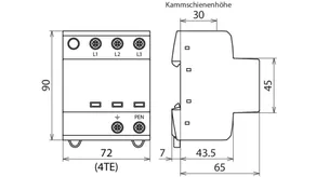 | Blitzstoßstrom (10/350 µs) [L-N]/[N-PE] (Iimp ) | 7,5 / 30 kA |