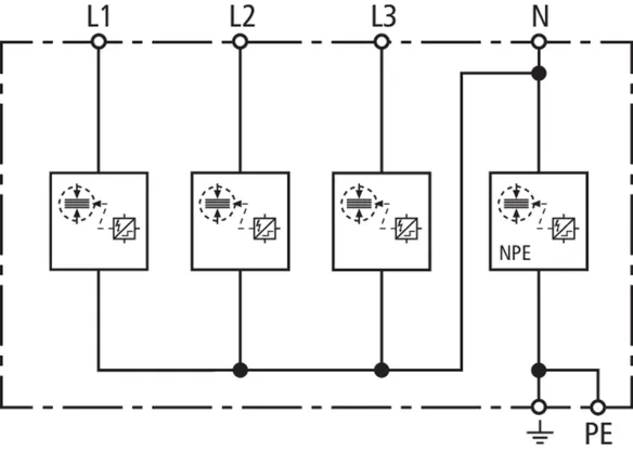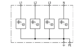 | Blitzstoßstrom (10/350 µs) [L1+L2+L3+N-PE] (Itotal ) | 30 kA |