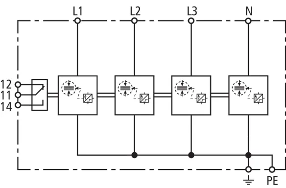 | Blitzstoßstrom (10/350 µs) [L1+L2+L3-PEN] (Itotal ) | 37,5 kA |