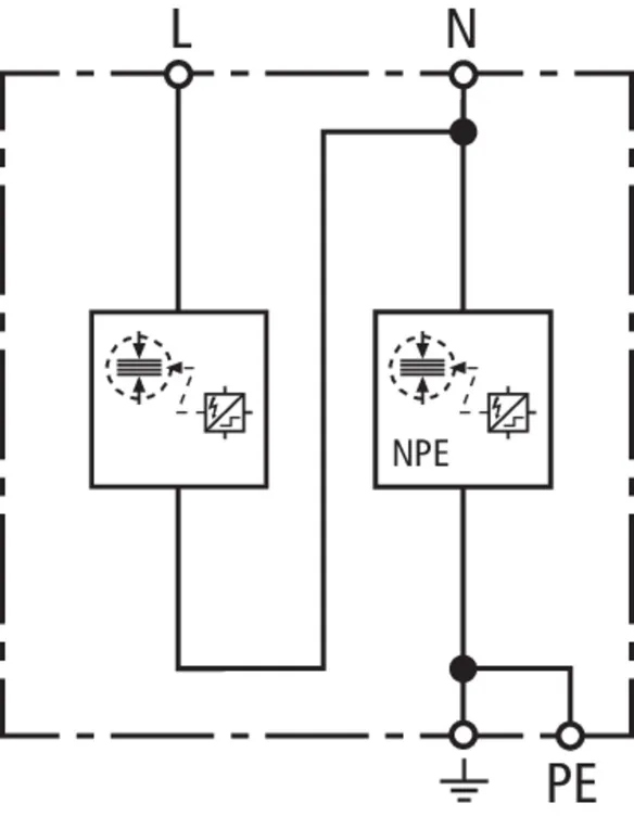 Anschlussfertiger, anwendungsoptimierter Kombi-Ableiter für einphasige TT- und TN-Systeme zum Einsatz im Hauptstromversorgungssystem (1+1-Schaltung) bei Wohngebäuden ohne äußeren Blitzschutz (auch mit Freileitungseinspeisung); mit potentialfreien Fernmeldekontakt.