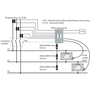 Faseroptischer Sensor DSRT FS zur Erfassung von Lichtbögen. Anschluss von einem Sensor an jedem Sensoreingang des Gerätes DSRT DD FS möglich.