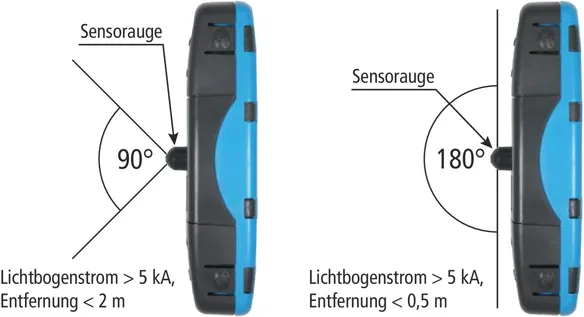 Max. Abstand zum Störlichtbogen 2 m (0,5 m)