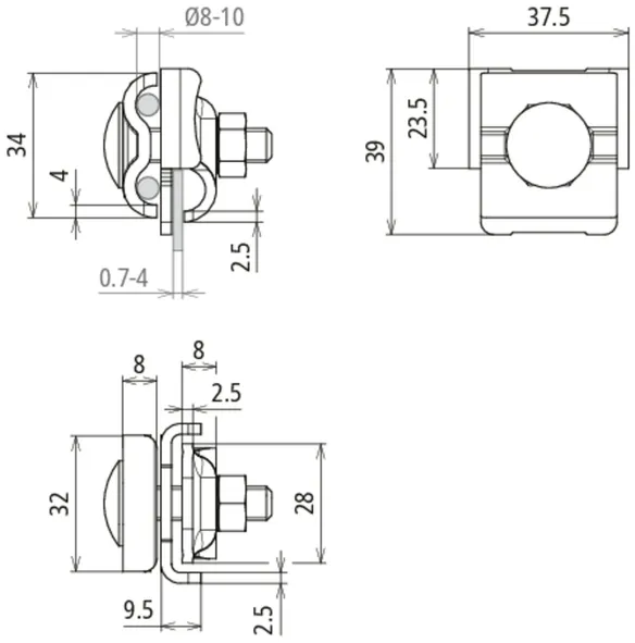 Clamping range Rd: 8-10 mm