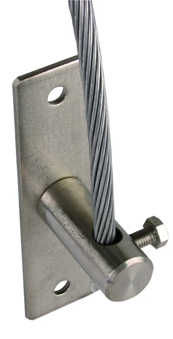 The span width for ridge conductors is approx. 15 m and for down conductors approx. 10 m without additional supports. Span stakes have to be fastened to the roof construction (rafters and crossbars) using anchor bolts and flat washers.
