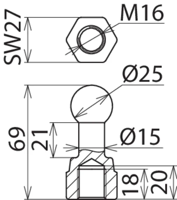 | Fixed ball point Ø | 25 mm |