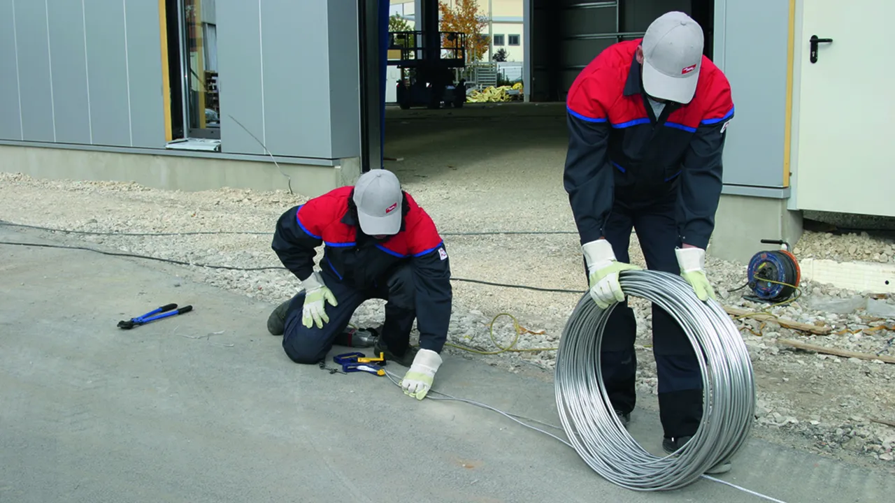 Wire with plastic sheath (halogen-free, frost-resistant and UV-stabilised) as additional mechanical / corrosion protection, e.g. when installed behind facades. Not suitable for underground installation.