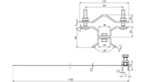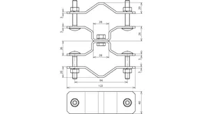 For attaching supporting tubes or air-termination rods D40 / D50, with double clamp for connecting 2x Rd 8-10 mm.