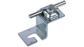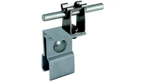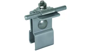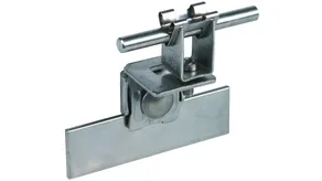 Seam clamp with enlarged contact surface for fixing additional air-termination systems or air-termination rods on metal roofs (e.g. Part No. 123 021).
