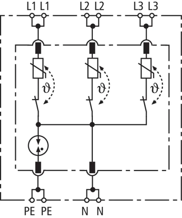 | Total discharge current (8/20 µs) [L1+L2+L3+N-PE] (Itotal ) | 8 kA |