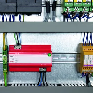- Visual operating state indication (green) and floating remote signalling contact (break contact) for fault indication