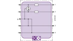 Space-saving combined lightning current and surge arrester module with RFID LifeCheck for protecting four single lines sharing a common reference potential as well as unbalanced interfaces. If LifeCheck detects thermal or electrical overload, the arrester has to be replaced. This status is indicated contactlessly by the DEHNrecord LC / SCM / MCM reader.