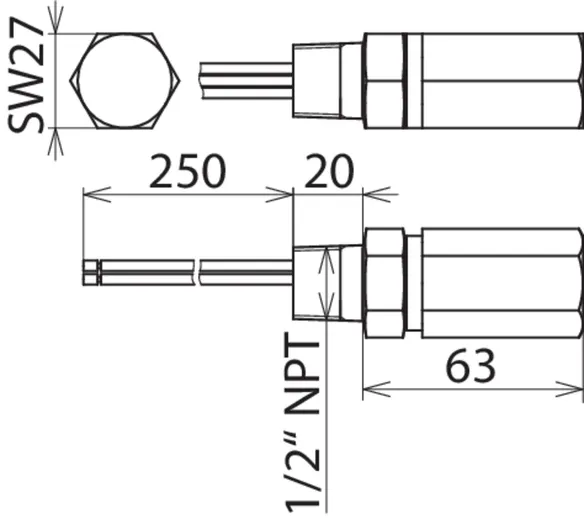 | For mounting on (field / device side) | 1/2-14 NPT female thread / 1/2-14 NPT male thread |