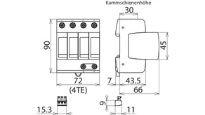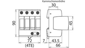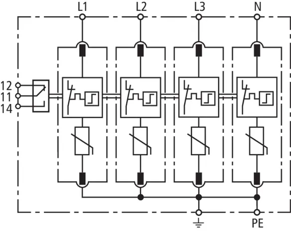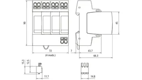 Modular surge arrester for TT and TN-S systems (3+1 configuration); with floating remote signalling contact.