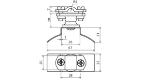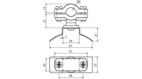 Holder with clamping part for tensioning strap fixing with grip head (Part No. 540 930) and endless tensioning strap (Part No. 540 931, dimension 14 x 0.3 mm).