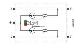 Space-saving, modular surge arrester with a width of 6 mm and push-in connection technology with status indication for protecting 2 lines of stranded unearthed signal interfaces with a nominal voltage of 230 V. With signal disconnection for maintenance purposes.