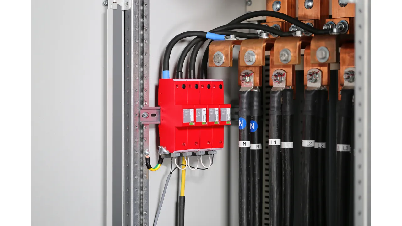 In the case of spark-gap-based type 1 arresters, the entire current flows through the type 1 arrester during the discharge process. Like a wave breaker, the incoming energy is greatly broken down, which significantly relieves the downstream SPDs. All type 1 arresters in the Red/Line product range feature the WBF wave breaker function.