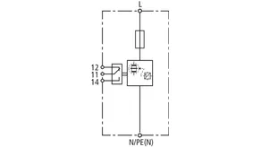 Single-pole combined lightning current and surge arrester with an integrated backup fuse capable of carrying lightning currents for use in 230 / 400 V systems; FM version with floating remote signalling contact.