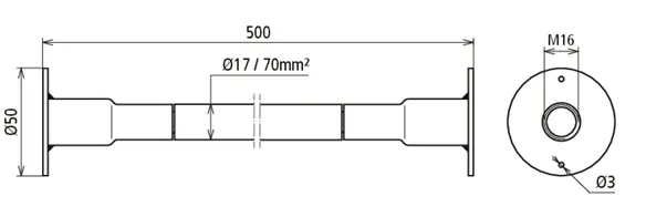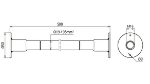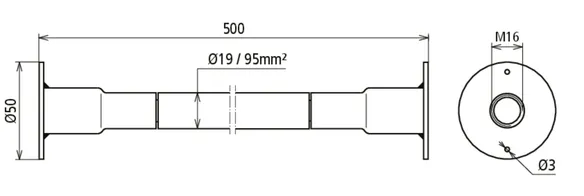 | Borehole cable lug | 13 mm for M12 and 17 mm for M16 |