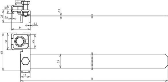 Dimensions of strap (l1 x w x d) 570 x 25 x 0.3 mm