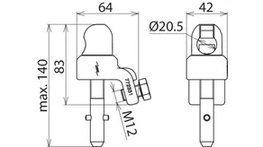 | For fixed ball point Ø | 20 mm |