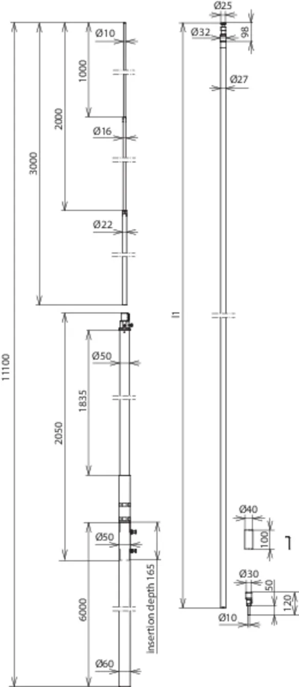 – Supporting tube GRP/Al Ø50 / 60 mm, length 2300 mm (telescoping of 200 mm)