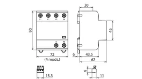 | SPD according to EN 61643-11 / IEC 61643-11 | Type 2 + Type 3 / class II + class III |