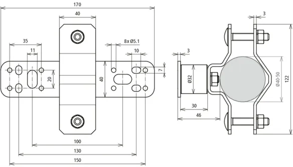 | Clamping range for supporting tube | 40-50 mm |